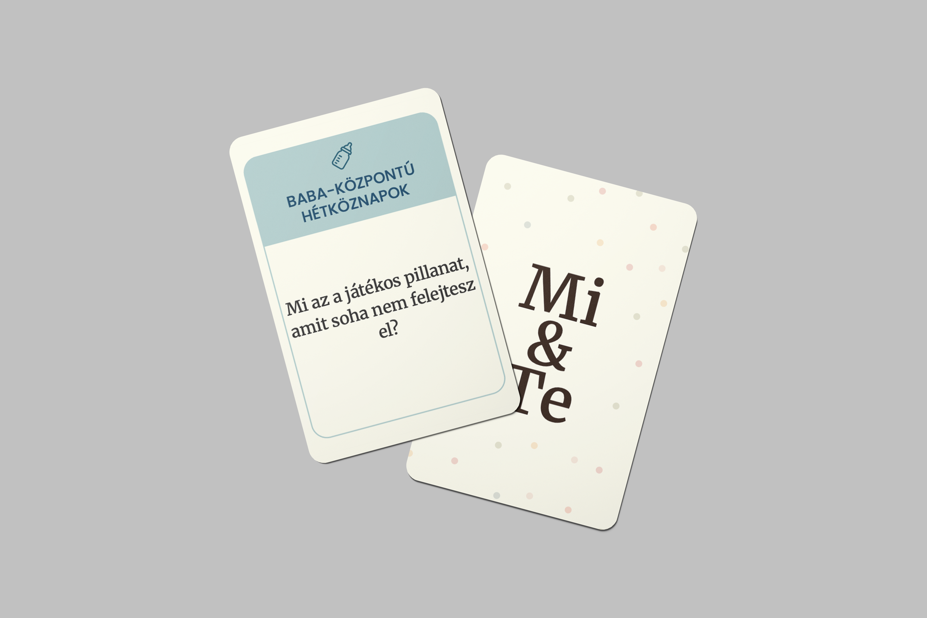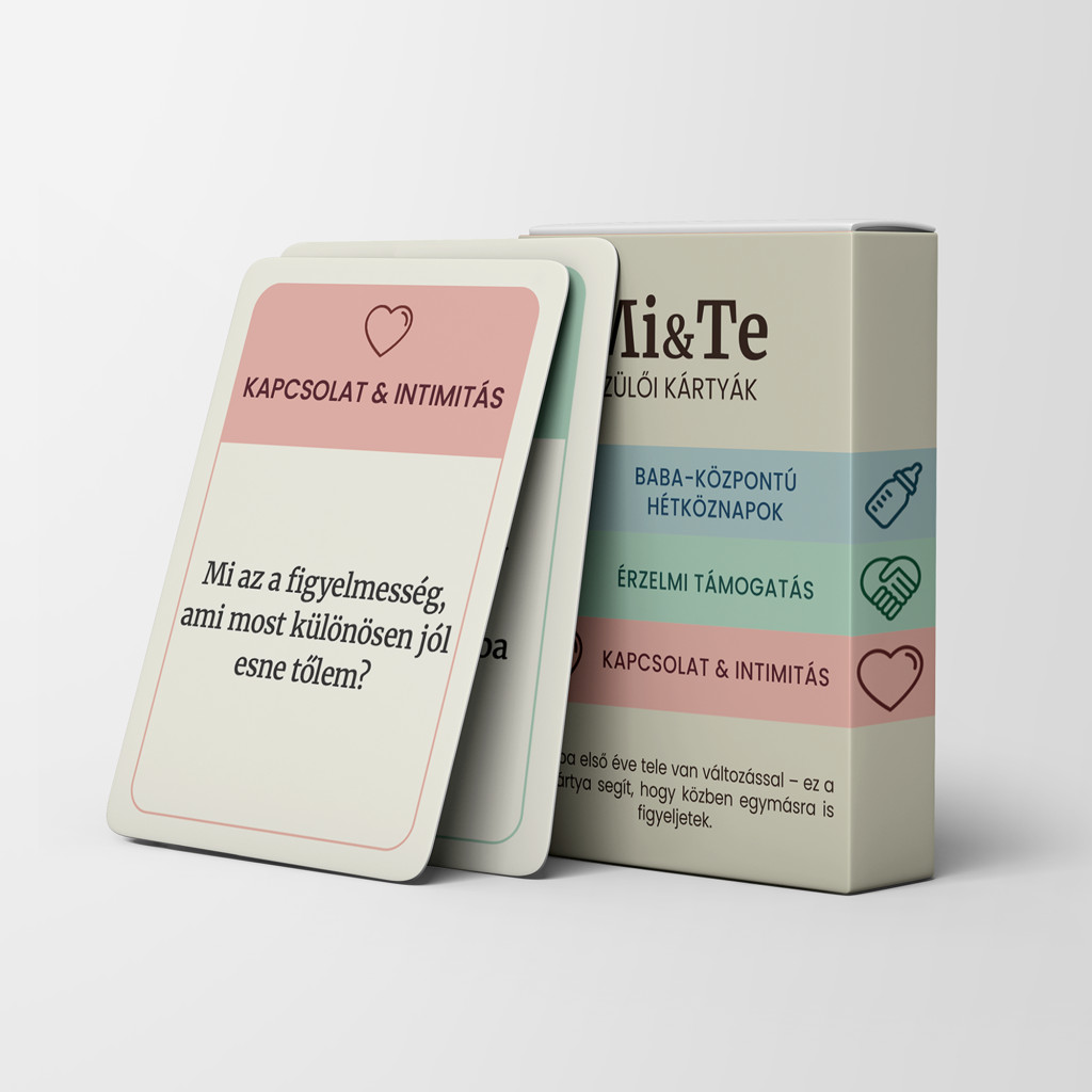 A baba érkezése mindent megváltoztat – a napirendet, a szokásokat, az energiátokat. A mindennapok forgatagában könnyű elveszíteni a kettesben töltött pillanatokat, pedig a kapcsolatotok ugyanúgy figyelmet érdemel. A Mi & Te – Szülői kártyák abban segít, hogy szülőként is megőrizzétek a közelséget és a beszélgetéseket.